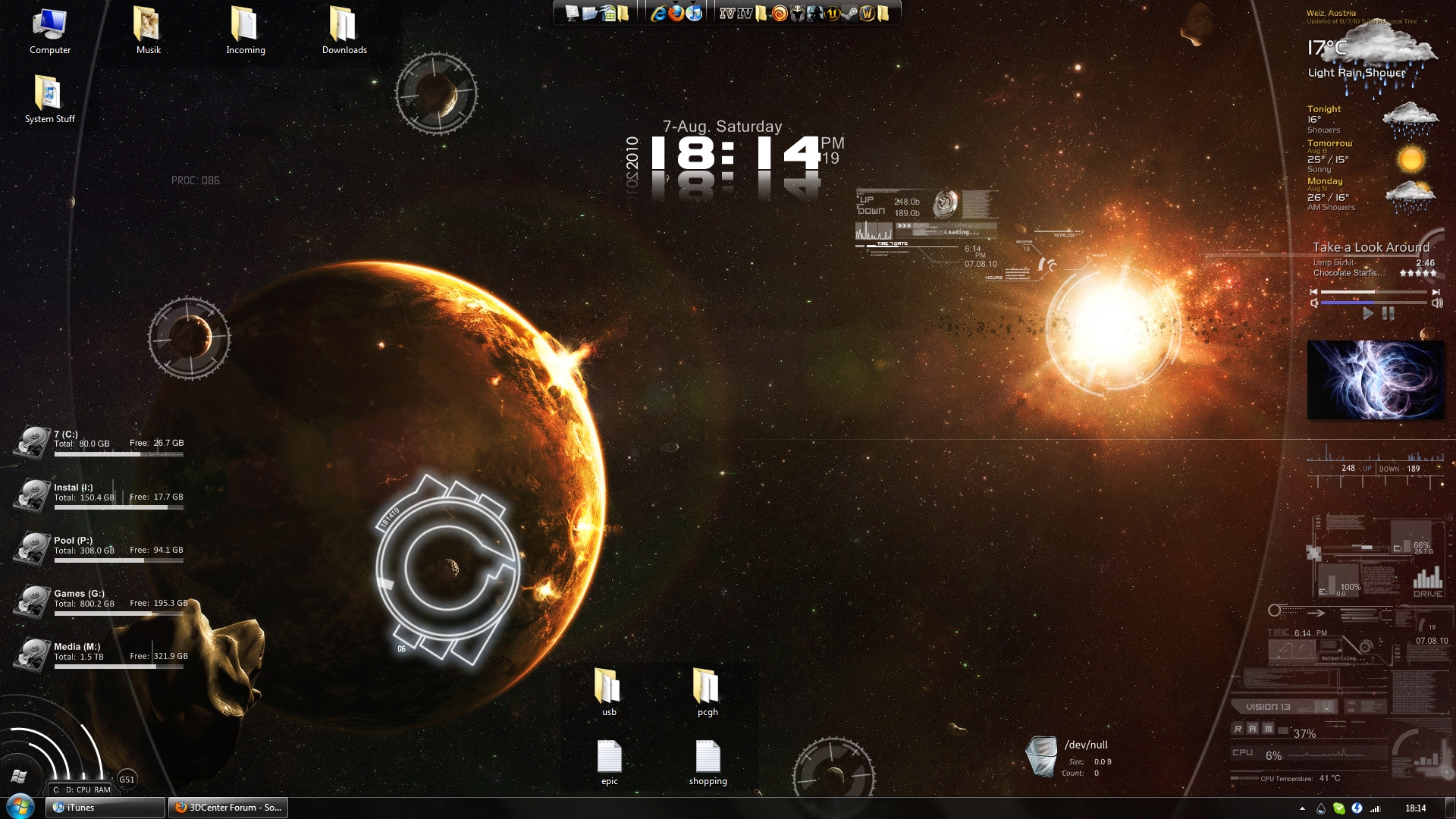 So there’s this pretty cool software for windows that I’ve known about for a while called Rainmeter. In short, it’s basically a desktop customization tool that has some cool features. Below are some examples of works people have done for their desktop using this software.